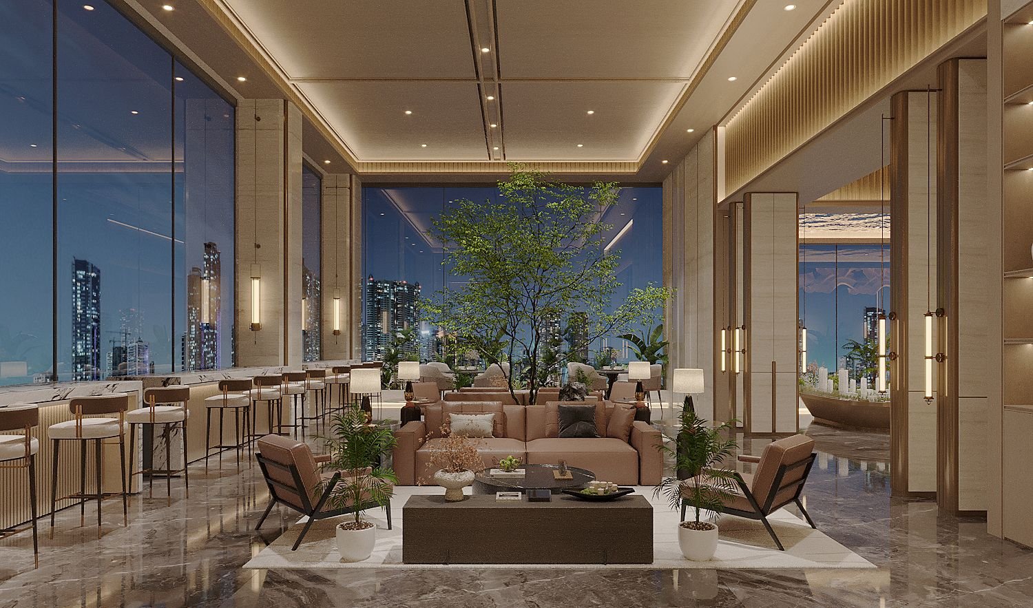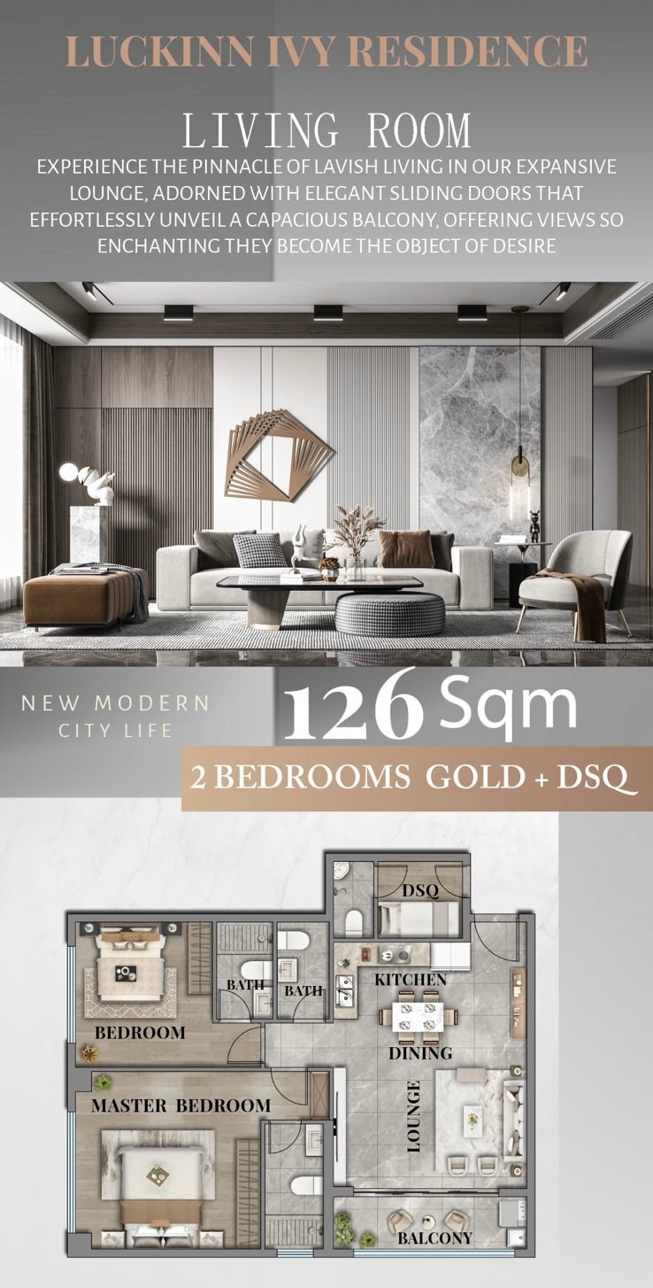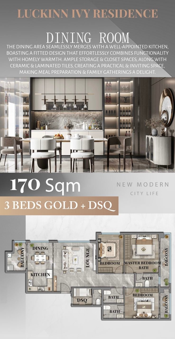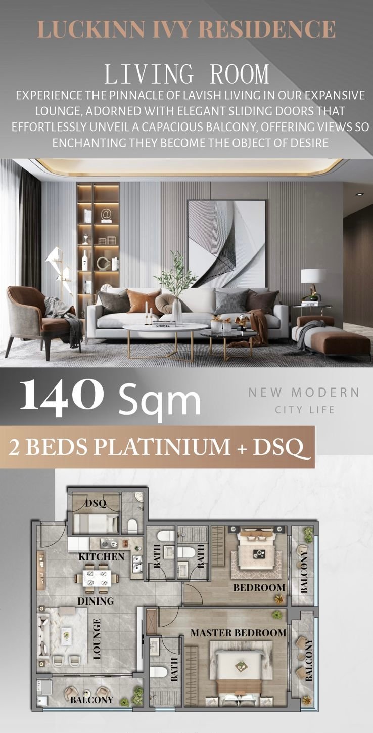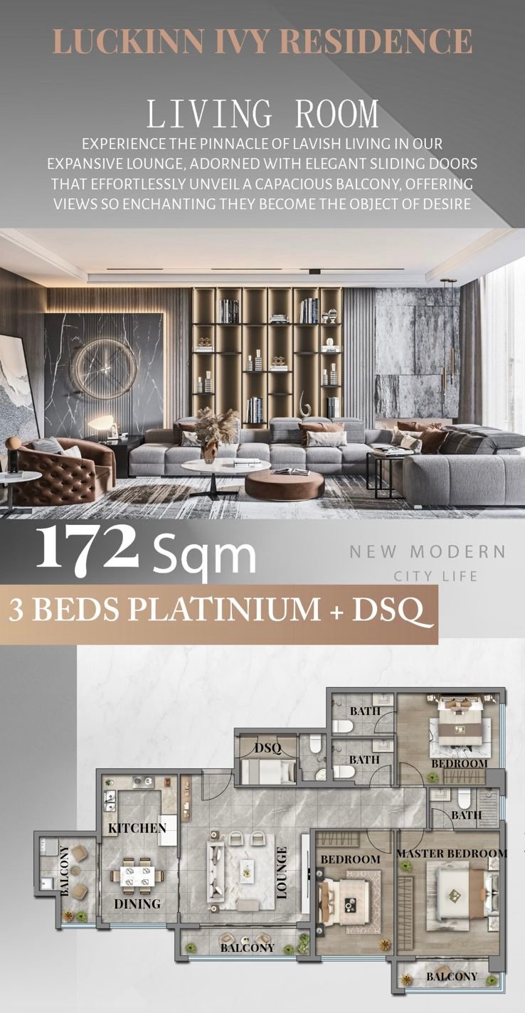 • Large balconies with city views • Bright living areas with large windows • Modern open-plan layouts • High-quality interior finishes • Spacious bedrooms and living spaces • DSQ available in selected units